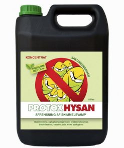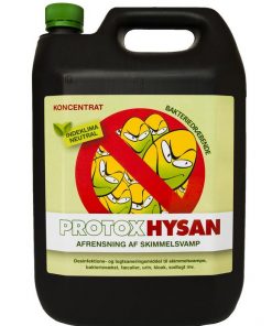 Protox Hysan fungerer som et specialrengøringsmiddel, der fjerner organiske rester og desinficerer overflader med bakterievækst. Ved korrekt anvendelse løsnes skimmelangreb fra overfladen, samtidig med at lugtgener reduceres.