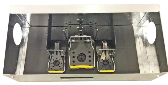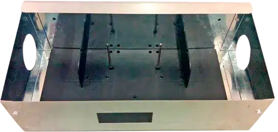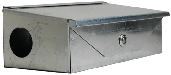 Robust Trinol giftstation i blik, hvilket gør den brugbar i alt salgs vejr. Fælden har et forstærket ydre der sikre at hverken mennesker eller dyr har mulighed for at komme i giftstationen. Trinol giftstation kan låses med en skrue eller en hængelås. Giftspyd medfølger.